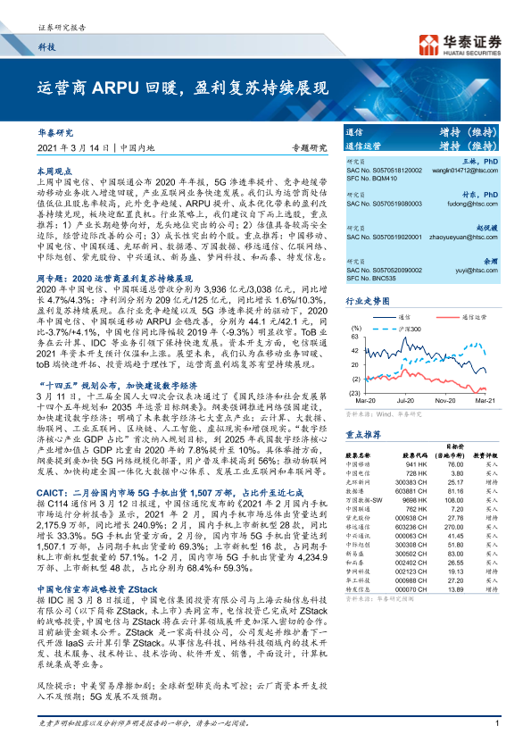 【华泰证券】【20210314】科技:运营商ARPU回暖,盈利复苏持续展现-20页