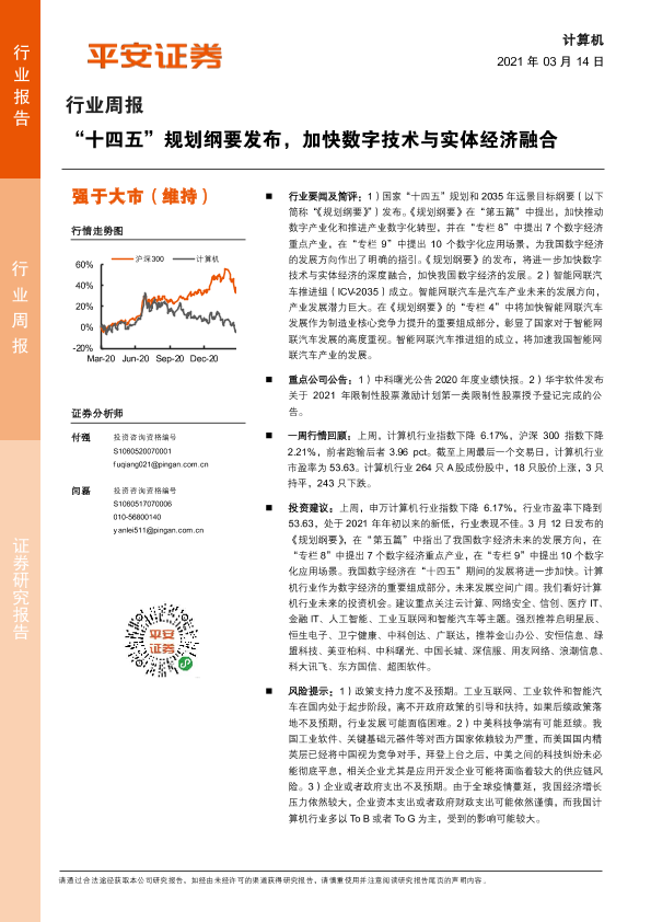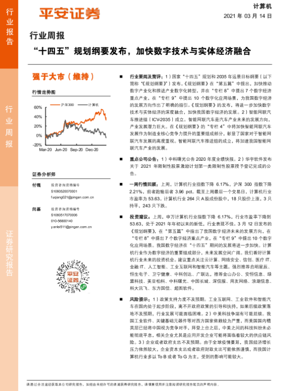【平安证券】【20210314】计算机行业周报:“十四五”规划纲要发布,加快数字技术与实体经济融合-5页