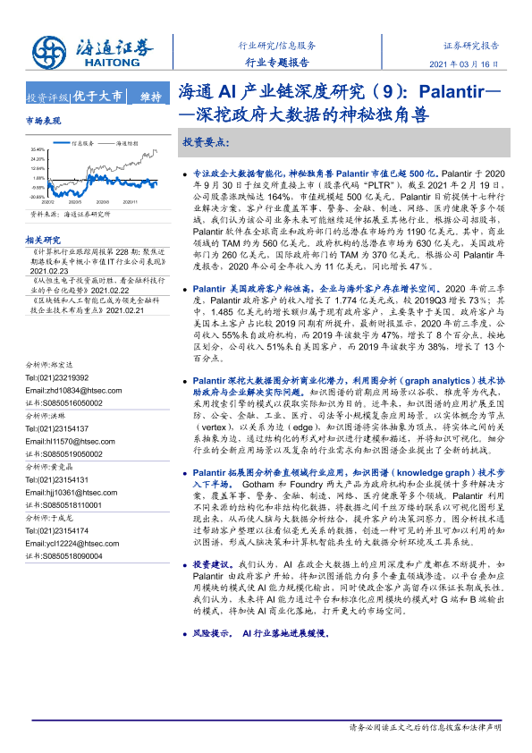 【海通证券】【20210316】海通AI产业链深度研究(9):Palantir——深挖政府大数据的神秘独角兽-17页