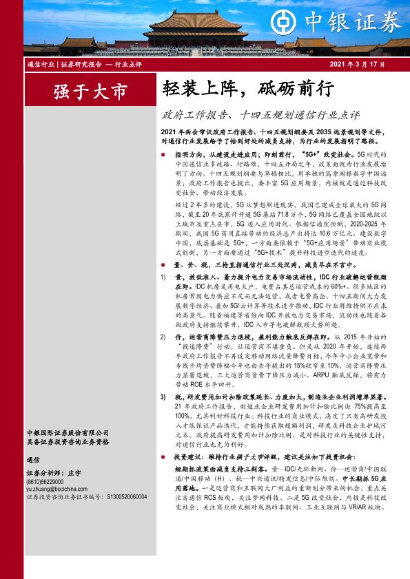【中银证券】【20210317】政府工作报告、十四五规划通信行业点评:轻装上阵,砥砺前行-7页