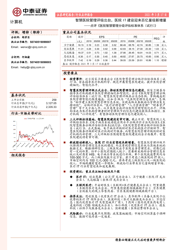 【中泰证券】【20210317】点评《医院智慧管理分级评估标准体系(试行)》:智慧医院管理评级出台,医院IT建设迎来百亿量级新增量-2页