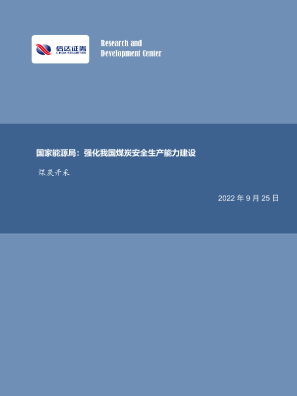 【信达证券】【20220925】煤炭开采行业周报:国家能源局:强化我国煤炭安全生产能力建设-27页