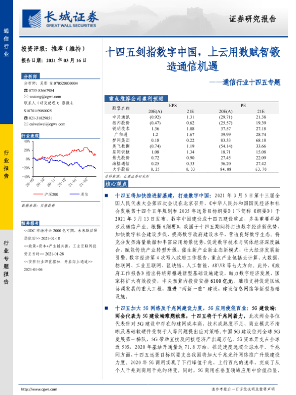 【长城证券】【20210316】20210316-长城证券-通信行业十四五专题:十四五剑指数字中国,上云用数赋智锻造通信机遇-32页