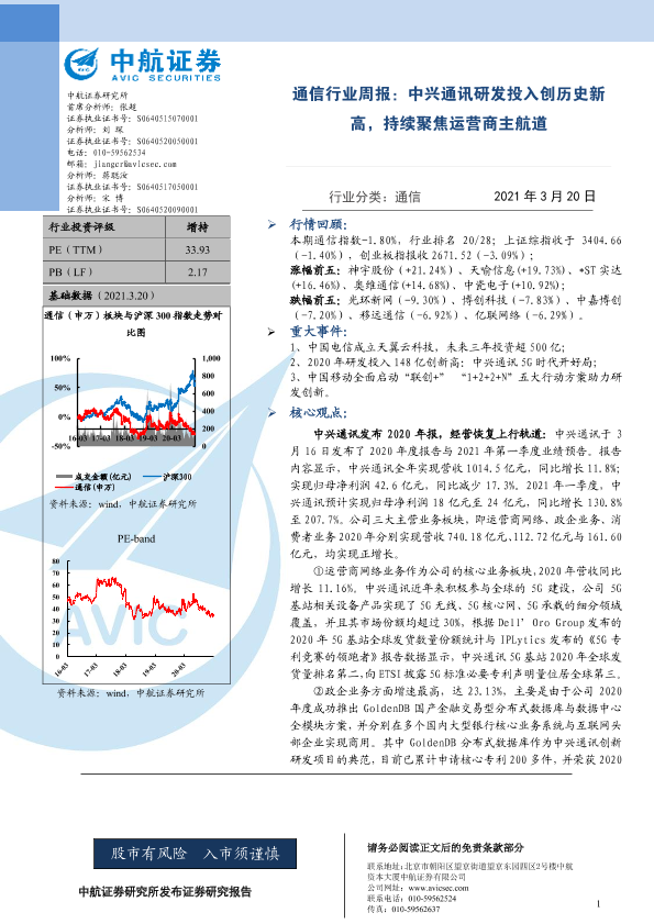 【中航证券】【20210320】通信行业周报:中兴通讯研发投入创历史新高,持续聚焦运营商主航道-3页