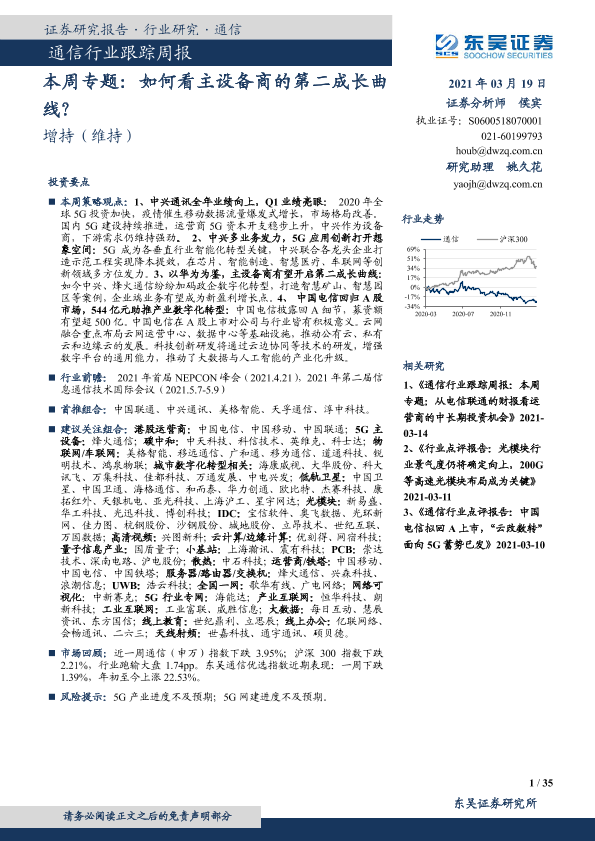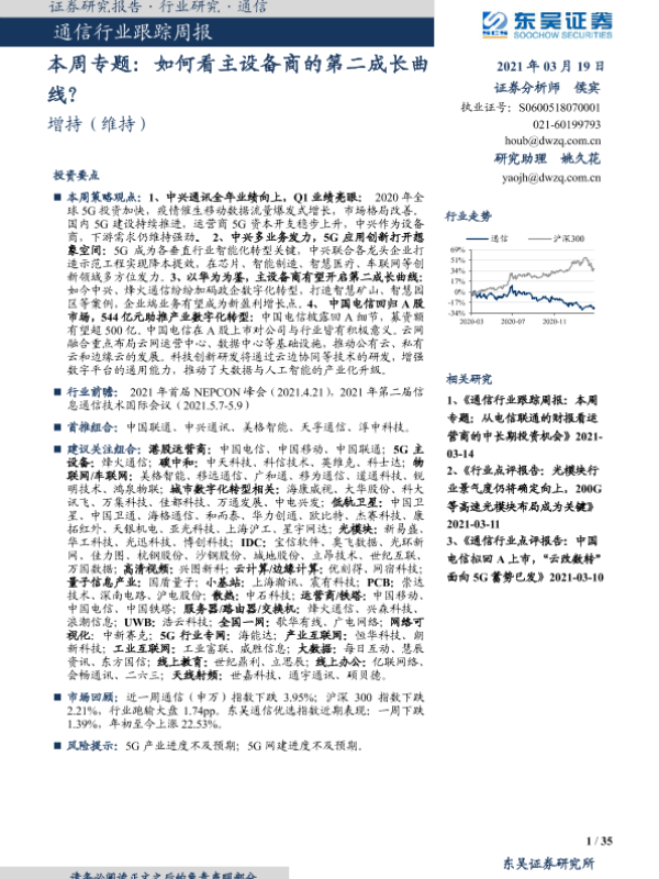 【东吴证券】【20210319】通信行业跟踪周报-本周专题:如何看主设备商的第二成长曲线?-35页