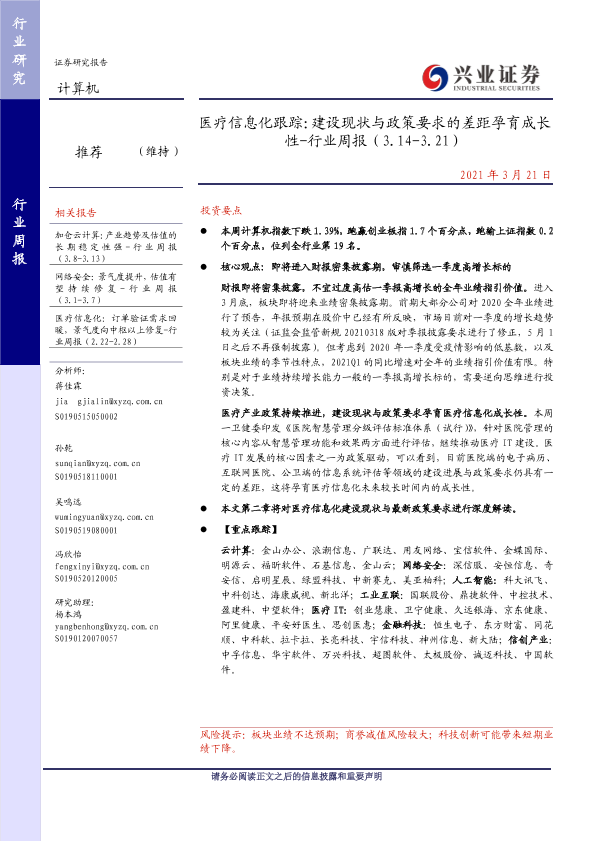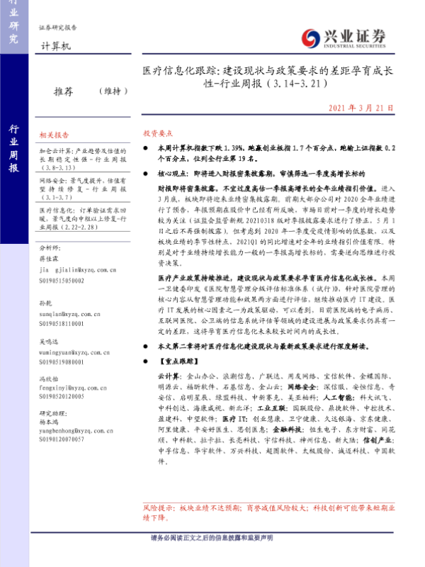 【兴业证券】【20210321】医疗信息化跟踪:建设现状与政策要求的差距孕育成长性-行业周报(3.14-3.21)-30页