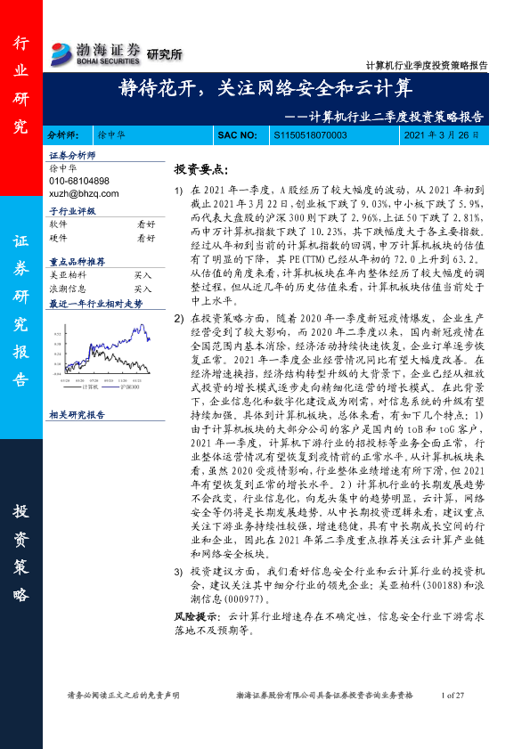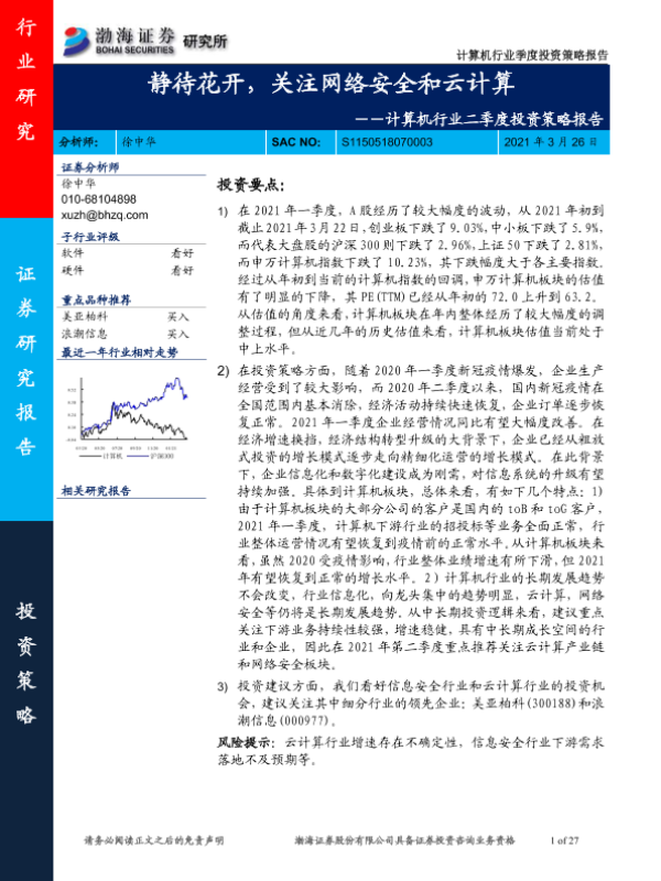 【渤海证券】【20210326】计算机行业二季度投资策略报告:静待花开,关注网络安全和云计算-27页