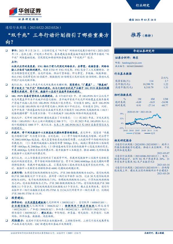 【华创证券】【20210328】通信行业周报:“双千兆”三年行动计划指引了哪些重要方向?-23页
