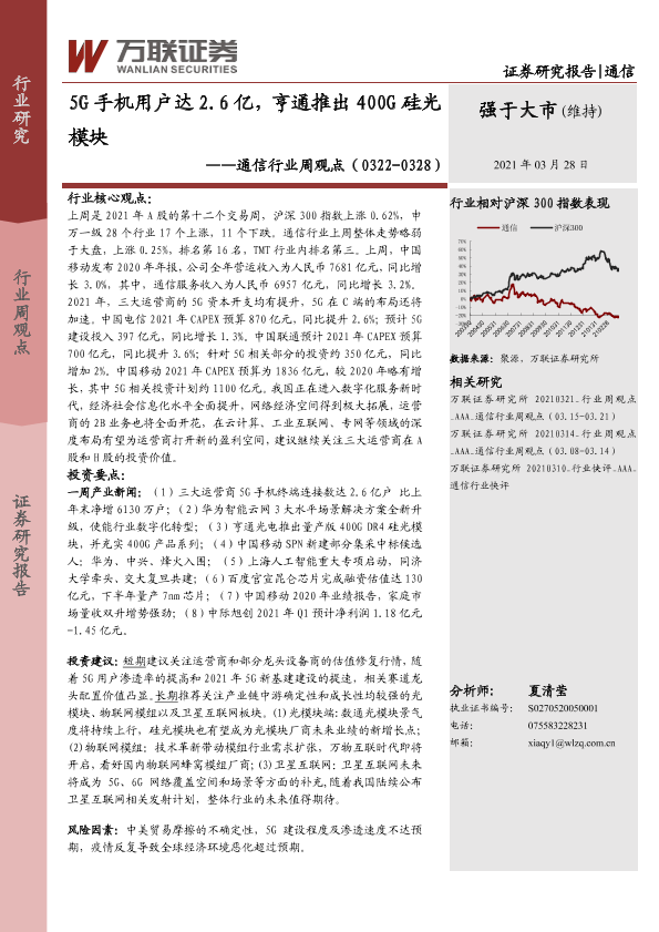 【万联证券】【20210328】5G手机用户达2.6亿,亨通推出400G硅光模块-13页