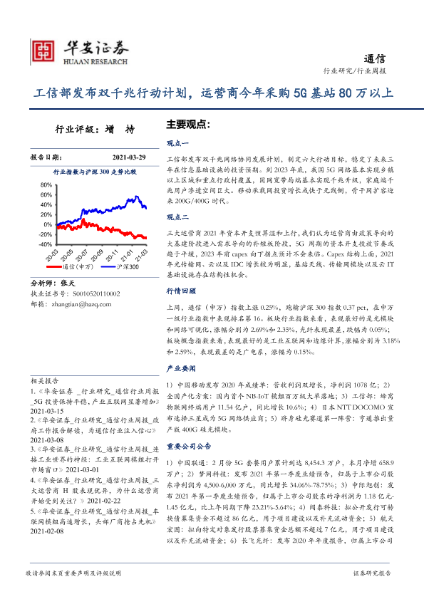 【华安证券】【20210329】通信行业周报:工信部发布双千兆行动计划,运营商今年采购5G基站80万以上-21页