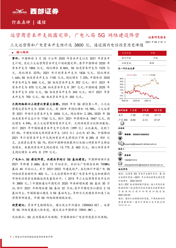 【西部证券】【20210401】通信:三大运营商和广电资本开支预计达3800亿,逼近国内电信投资历史峰值-2页