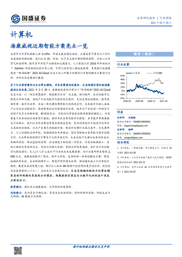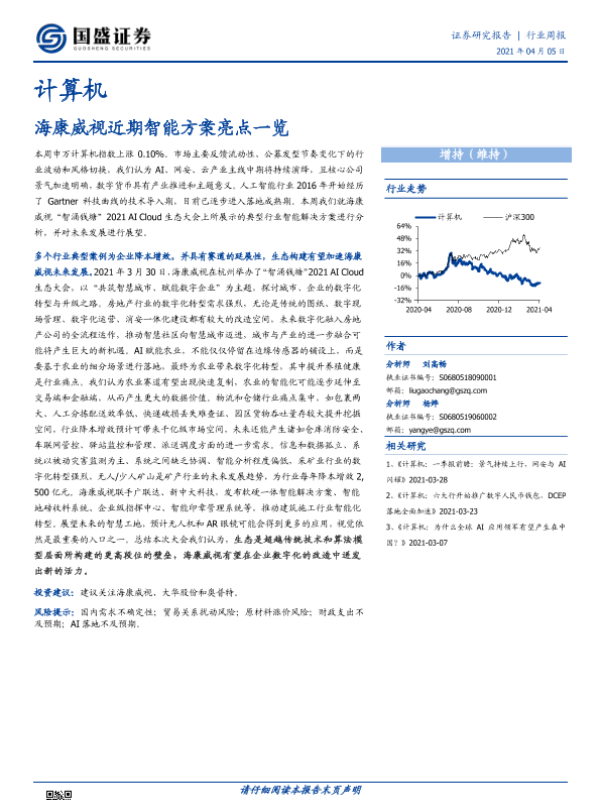 【国盛证券】【20210405】20210405-国盛证券-计算机行业周报:海康威视近期智能方案亮点一览-14页