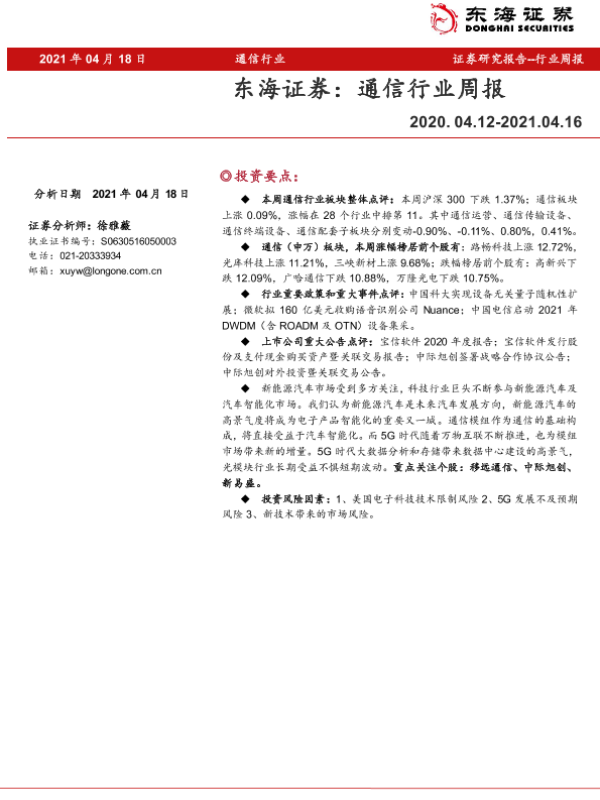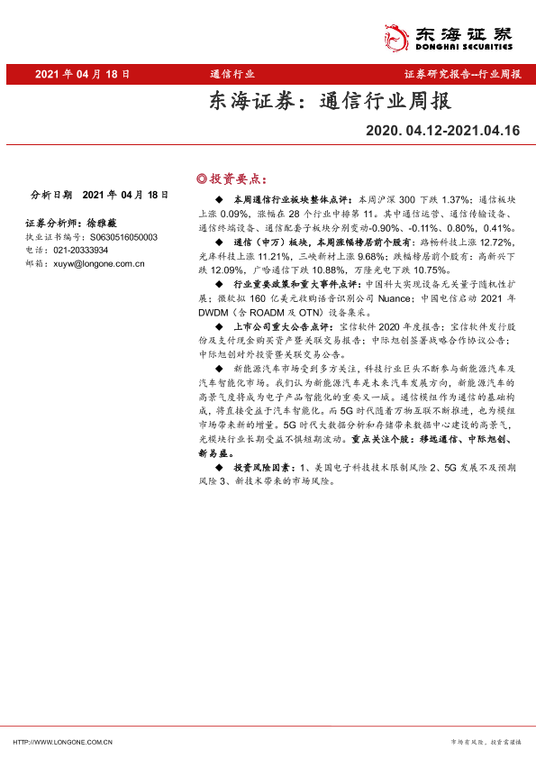 【东海证券】【20210418】20210418-东海证券-通信行业周报-6页