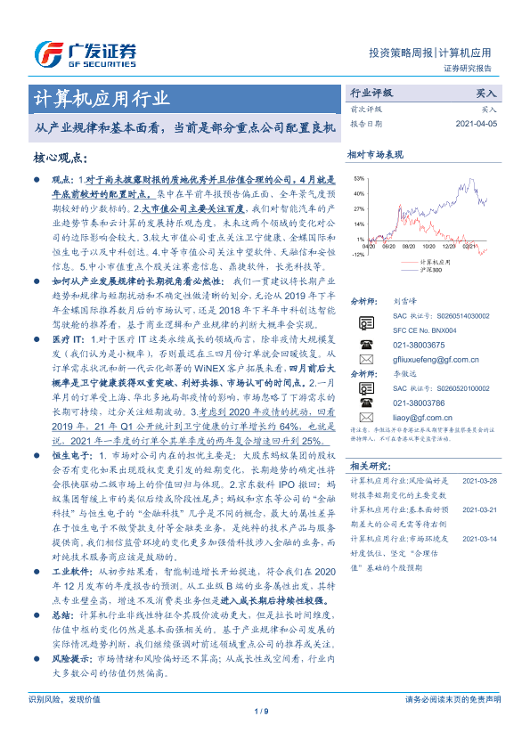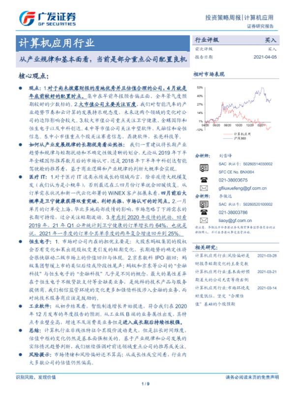 【广发证券】【20210405】20210405-广发证券-计算机应用行业投资策略周报:从产业规律和基本面看,当前是部分重点公司配置良机-9页