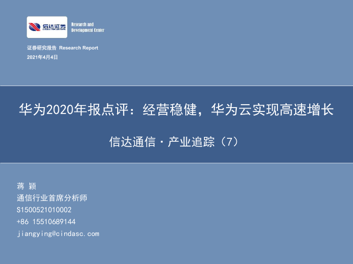 【信达证券】【20210404】华为2020年报点评:经营稳健,华为云实现高速增长-69页