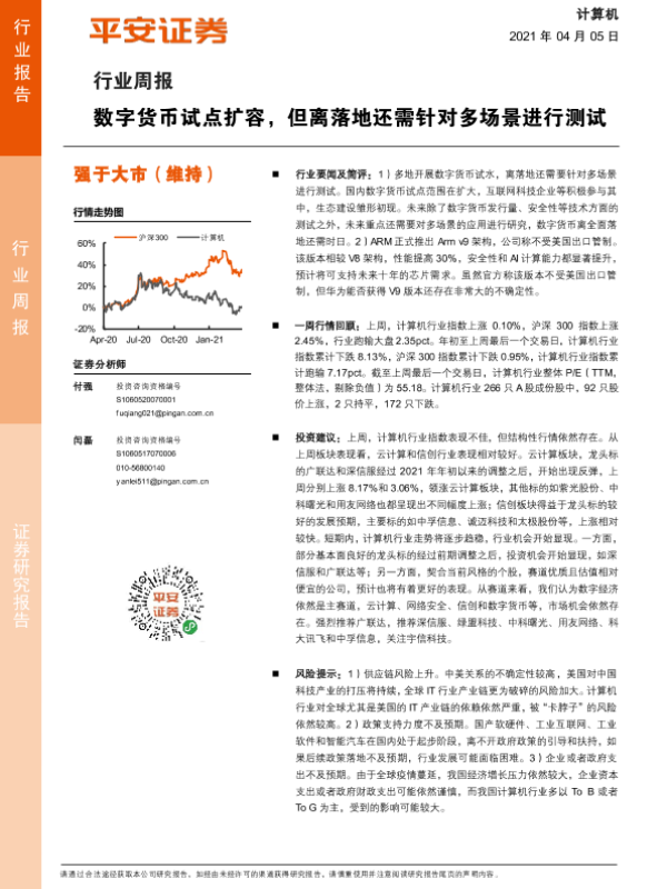 【平安证券】【20210405】计算机行业周报:数字货币试点扩容,但离落地还需针对多场景进行测试-6页