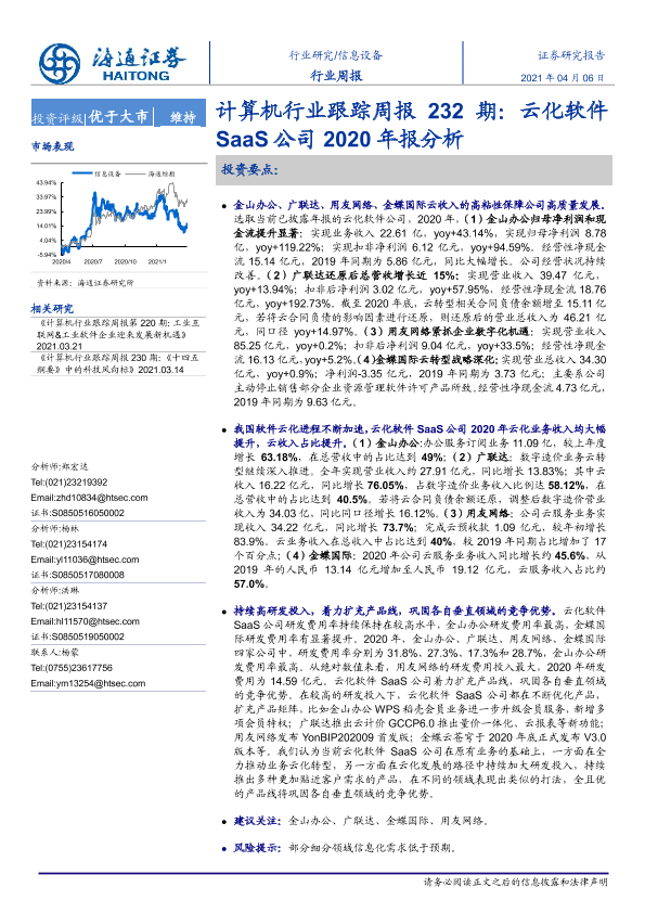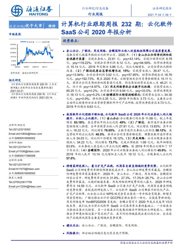 【海通证券】【20210406】计算机行业跟踪周报232期:云化软件SaaS公司2020年报分析-9页