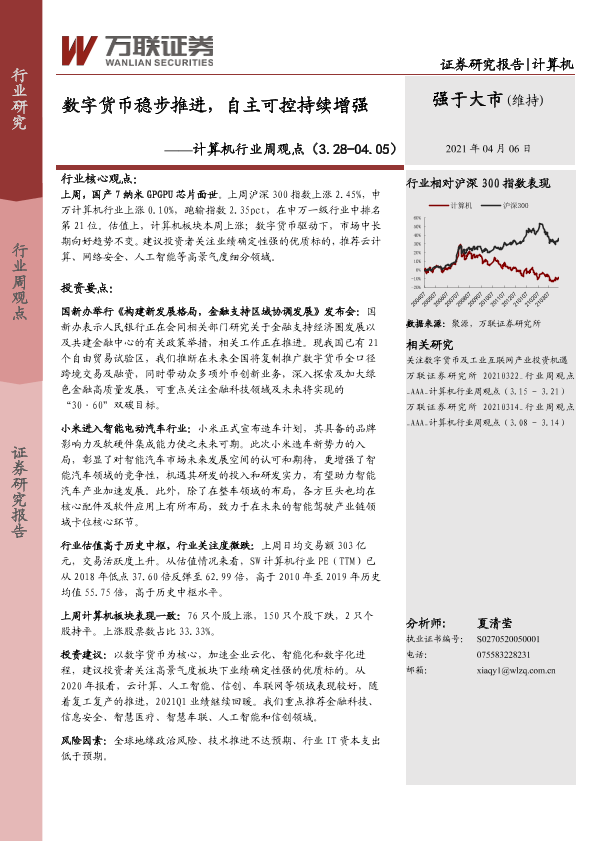 【万联证券】【20210406】计算机行业周观点:数字货币稳步推进,自主可控持续增强-13页