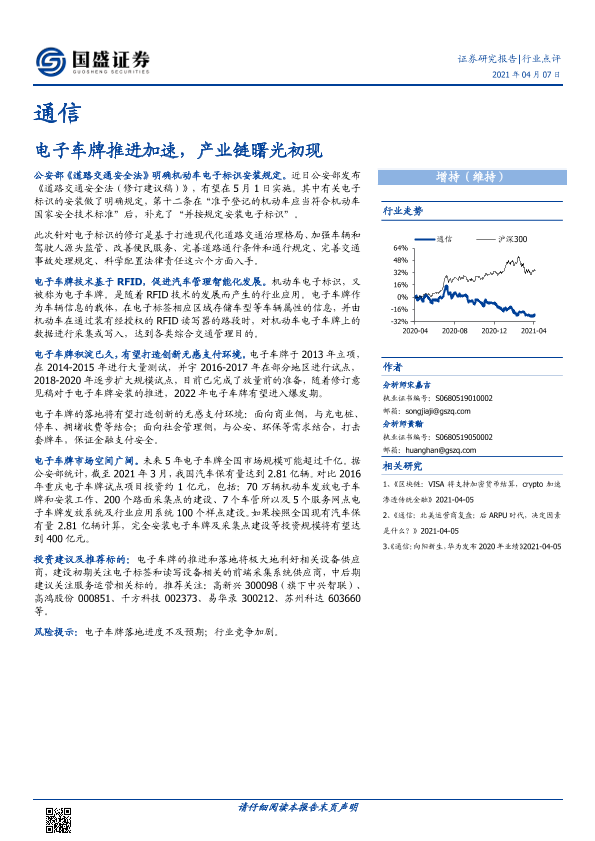【国盛证券】【20210407】通信行业:电子车牌推进加速,产业链曙光初现-2页