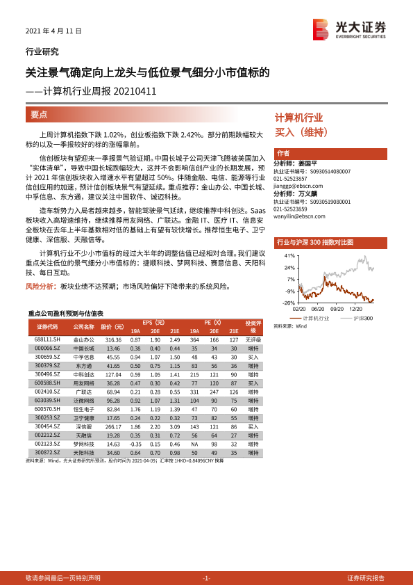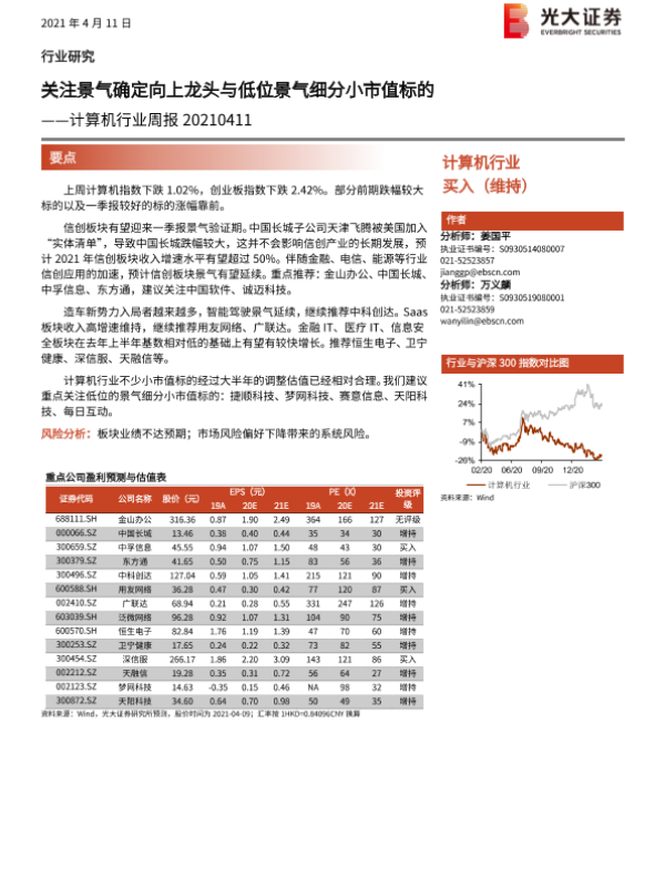 【光大证券】【20210411】计算机行业周报:关注景气确定向上龙头与低位景气细分小市值标的-10页