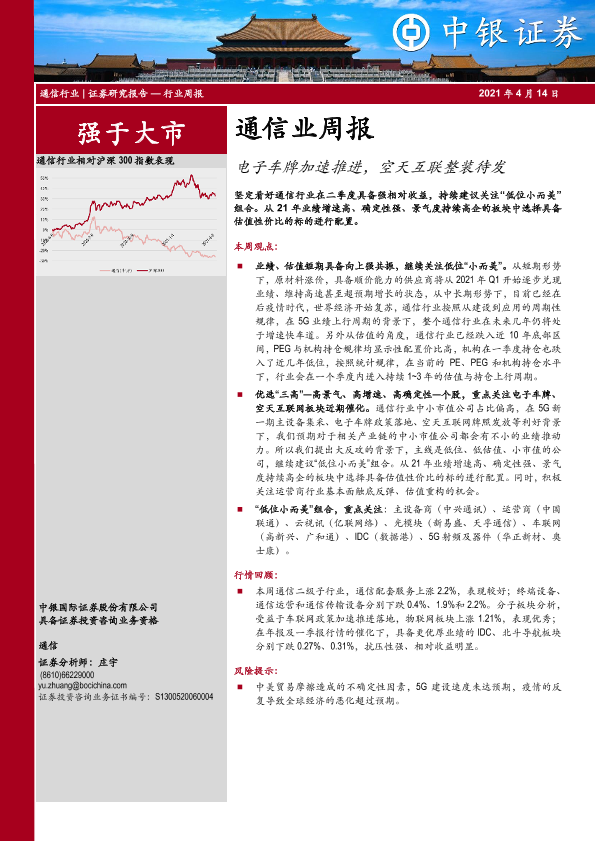 【中银证券】【20210414】20210414-中银证券-通信业周报:电子车牌加速推进,空天互联整装待发-16页