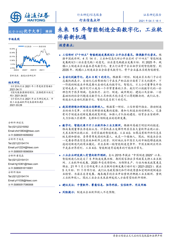 【海通证券】【20210418】信息服务行业信息点评:未来15年智能制造全面数字化,工业软件崭新机遇-2页