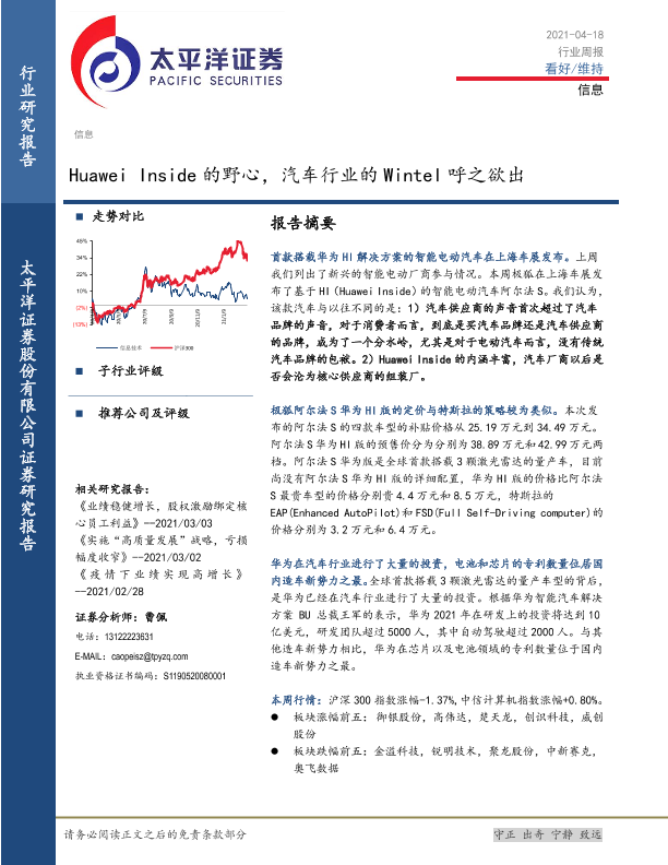 【太平洋证券】【20210418】20210418-太平洋-信行业周报:Huawei Inside的野心,汽车行业的Wintel呼之欲出-15页
