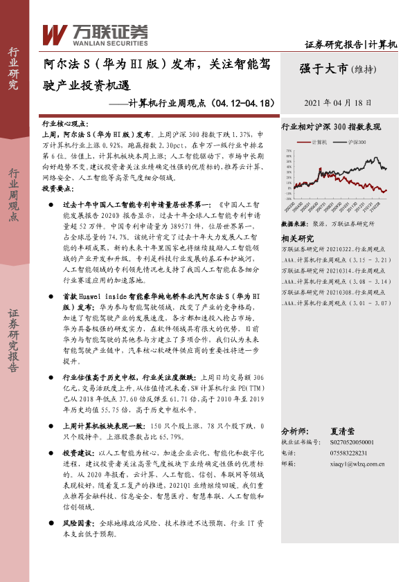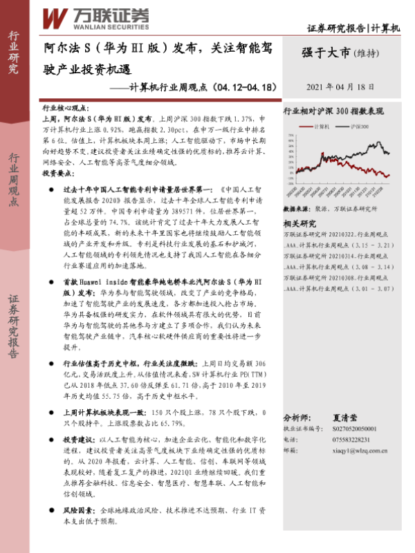 【万联证券】【20210418】阿尔法 S(华为 HI版)发布,关注智能驾驶产业投资机遇-12页