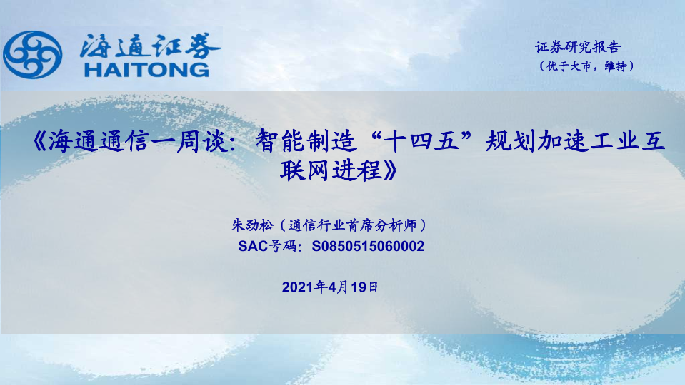 【海通证券】【20210419】海通通信一周谈:智能制造“十四五”规划加速工业互联网进程-11页