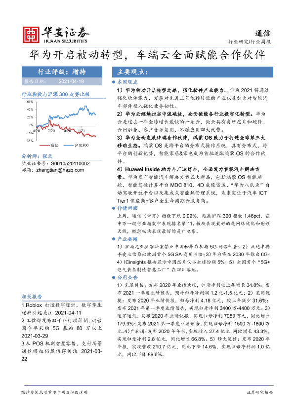 【华安证券】【20210419】20210419-华安证券-通信行业周报:华为开启被动转型,车端云全面赋能合作伙伴-23页