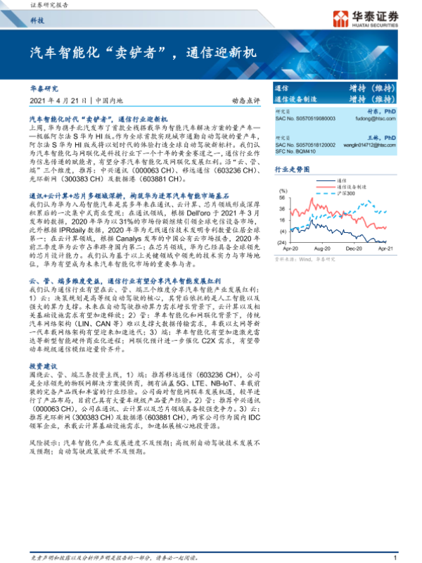 【华泰证券】【20210421】科技:汽车智能化“卖铲者”,通信迎新机-6页