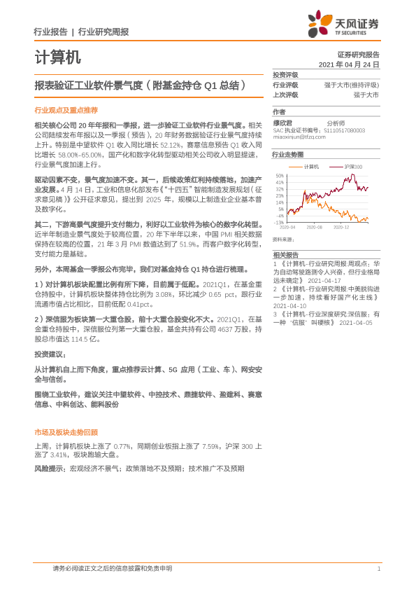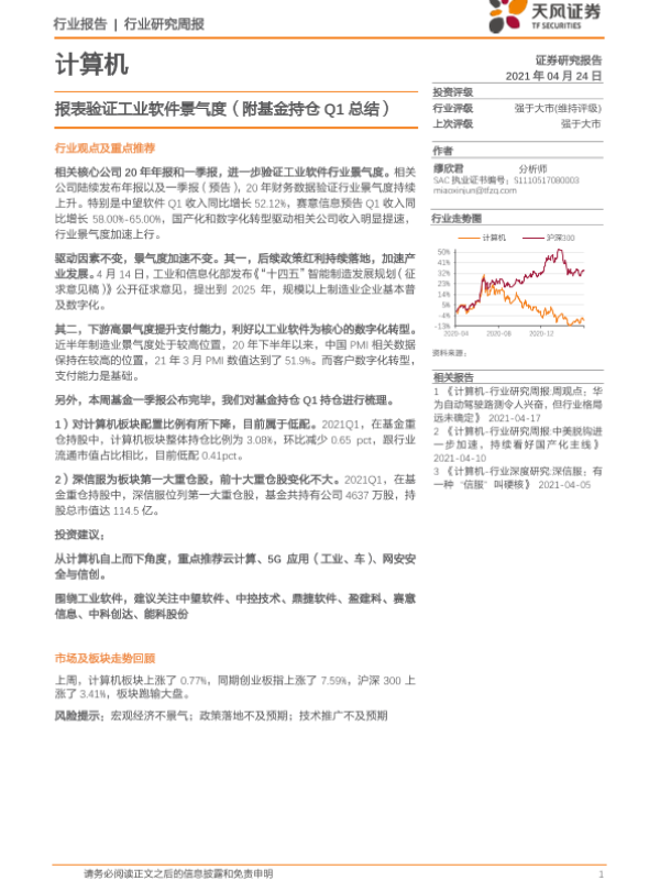 【天风证券】【20210424】20210424-天风证券-计算机行业研究周报:报表验证工业软件景气度(附基金持仓Q1总结)-7页