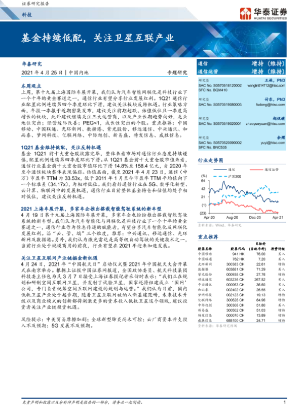 【华泰证券】【20210425】通信:基金持续低配,关注卫星互联产业-27页