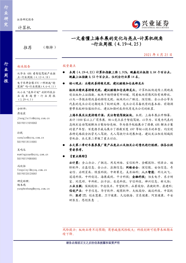【兴业证券】【20210425】一文看懂上海车展的变化与亮点-计算机视角 -行业周报(4.19-4.25)-26页