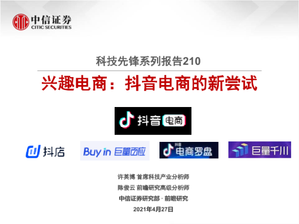 【中信证券】【20210427】科技先锋系列报告210:兴趣电商:抖音电商的新尝试-38页
