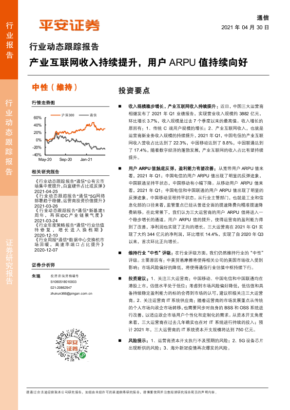 【平安证券】【20210430】通信行业动态跟踪报告:产业互联网收入持续提升,用户ARPU值持续向好-6页