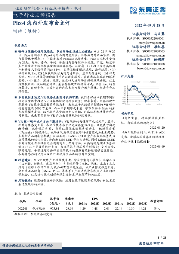 【东吴证券】【20220928】电子行业点评报告:Pico4海内外发布会点评-21页