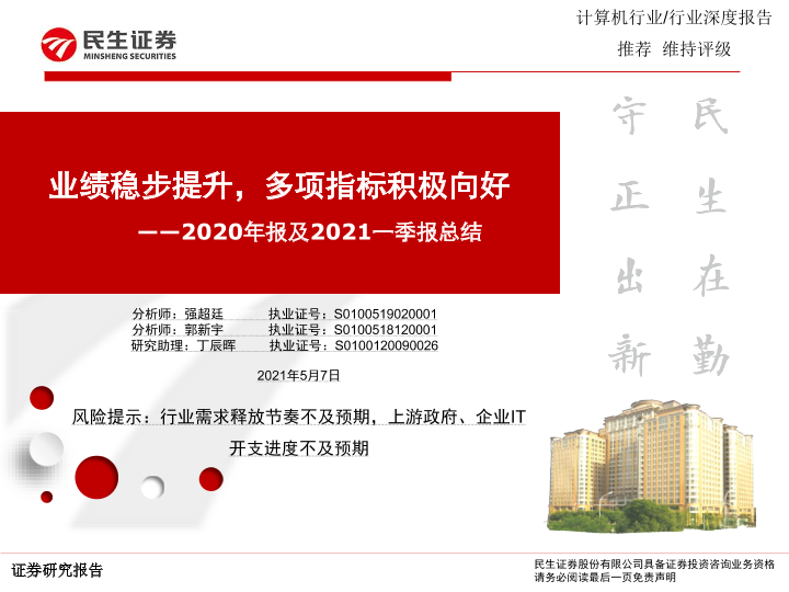 【民生证券】【20210507】计算机行业2020年报及2021一季报总结:业绩稳步提升,多项指标积极向好-53页