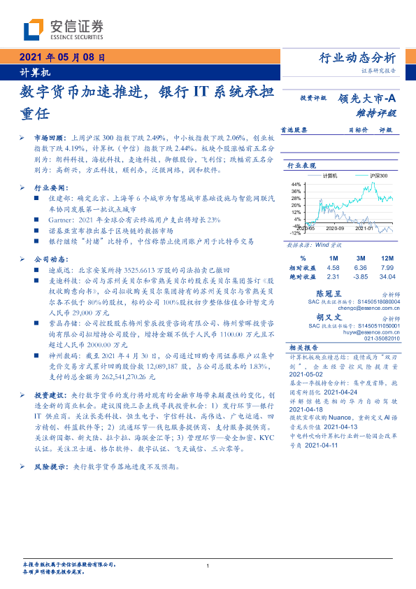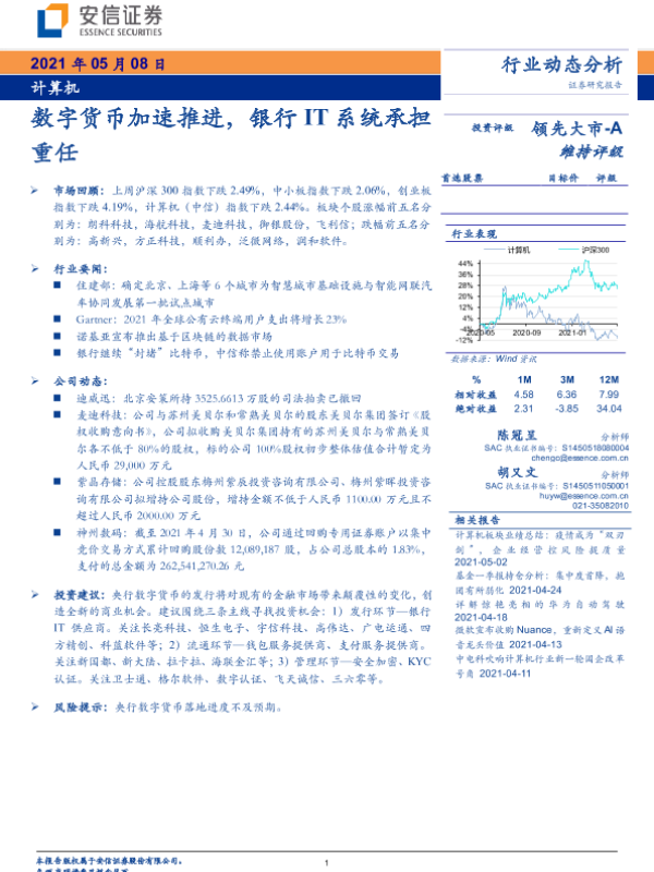 【安信证券】【20210508】计算机行业动态分析:数字货币加速推进,银行IT系统承担重任-14页