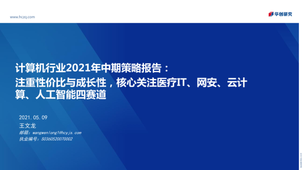 【华创证券】【20210509】计算机行业2021年中期策略报告:注重性价比与成长性,核心关注医疗IT、网安、云计算、人工智能四赛道-28页