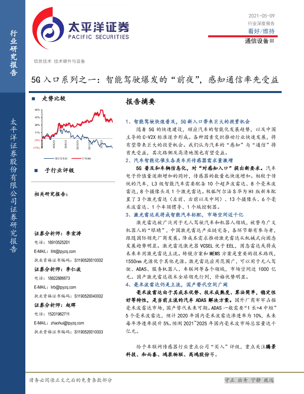【太平洋证券】【20210509】5G入口系列之一:智能驾驶爆发的“前夜”,感知通信率先受益-33页