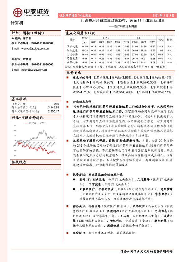 【中泰证券】【20210509】医疗科技行业周报:门诊费用跨省结算政策颁布,医保IT行业迎新增量-11页