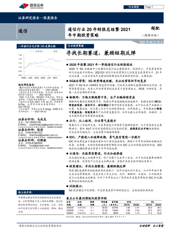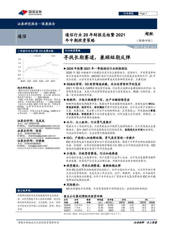 【国信证券】【20210510】通信行业20年财报总结暨2021年中期投资策略:寻找长期赛道,兼顾短期反弹-51页