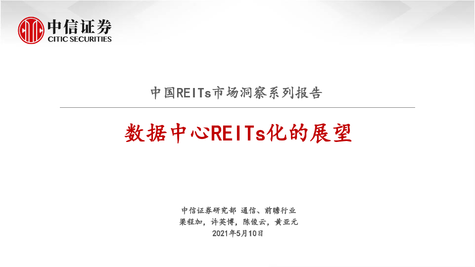 【中信证券】【20210510】中国REITs市场洞察系列报告:数据中心REITs化的展望-22页