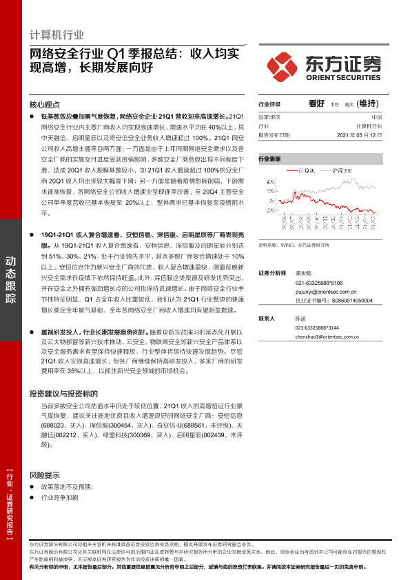 【东方证券】【20210512】计算机行业:网络安全行业Q1季报总结:收入均实现高增,长期发展向好-4页