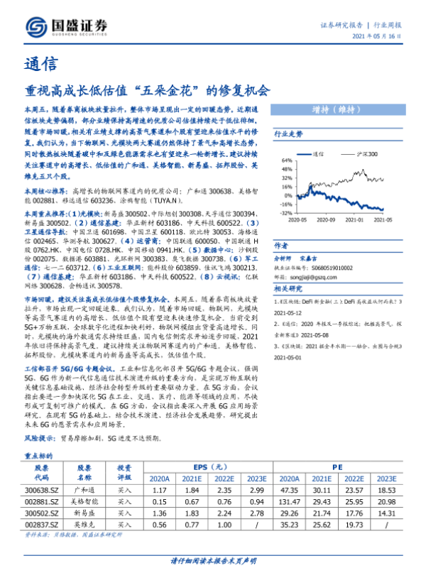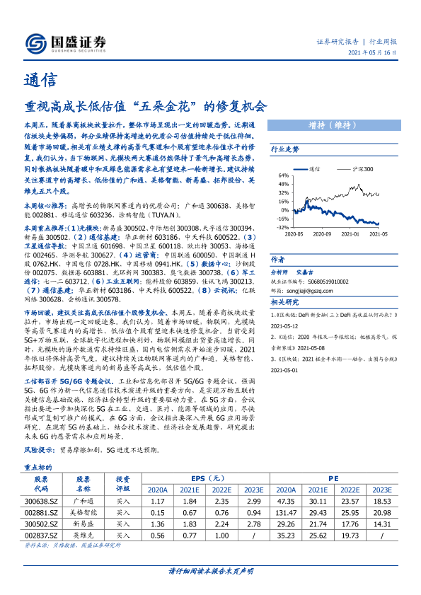 【国盛证券】【20210516】通信行业周报:重视高成长低估值“五朵金花”的修复机会-14页