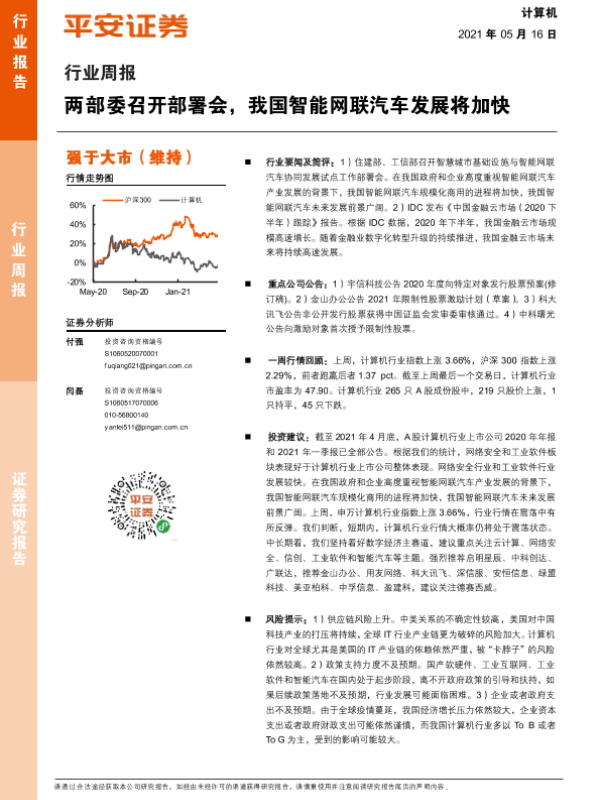 【平安证券】【20210516】计算机行业周报:两部委召开部署会,我国智能网联汽车发展将加快-5页