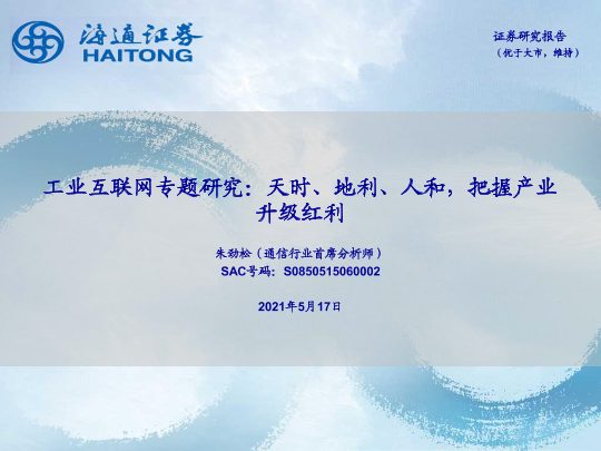 【海通证券】【20210517】工业互联网专题研究:天时、地利、人和,把握产业升级红利-55页