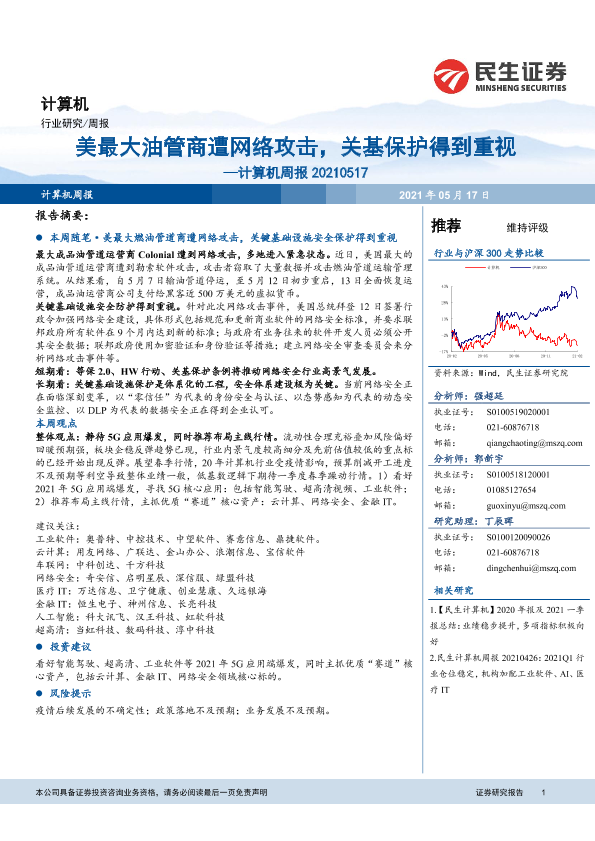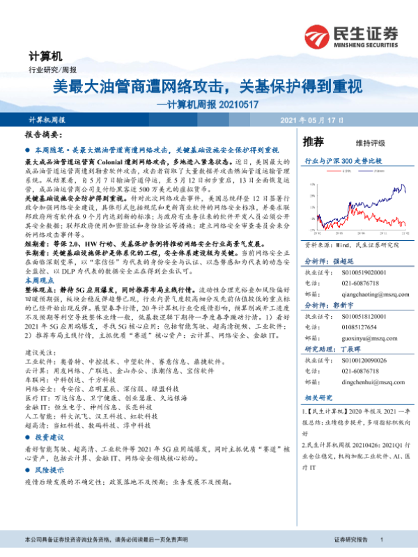 【民生证券】【20210517】美最大油管商遭网络攻击,关基保护得到重视—计算机周报 20210517-18页