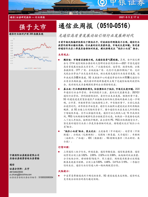 【中银证券】【20210517】通信业周报:光通信高质量发展论坛引领行业发展新时代-18页